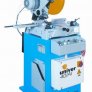 Tronçonneuse électronique double têtes. Déplacement automatique du chariot droit mobile commandé pour un moteur asynchrone et lecture de la cote sur régle magnetique. Rotation manuel des têtes sur l'axe vertical pour coupes entre 45°- 0°- 45° et intermédiaires. Inclinaison manuel des têtes sur l'axe horizontal pour coupes entre 0° et 45° extérieurs.